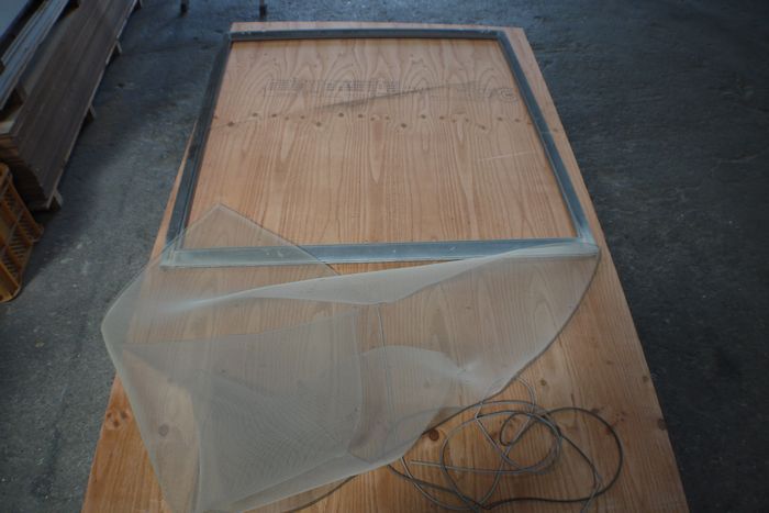 先ずは周囲の押さえゴムを取り外し、古いネットを剥がします。